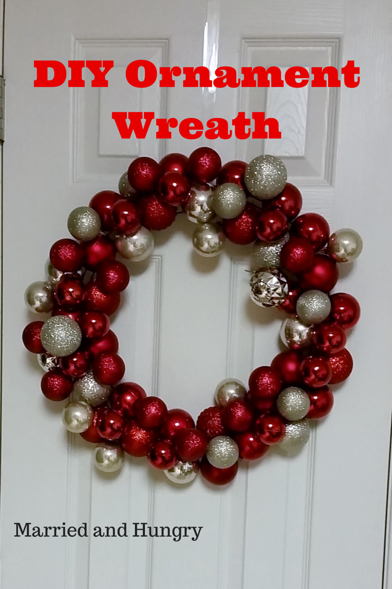 I made this wreath for $9. Now I did already have a wire wreath frame which run about $4 from Hobby Lobby. You can use a foam frame if you want or any type of wreath frame that you can make ornaments stick too. I got all the ornaments from the Dollar Tree for $1 a tube that had 5-15 in it, depending on the size. This year we will be decorating in silver and red so you will be seeing a lot of crafts with the same colors as I prep to decorate the house.